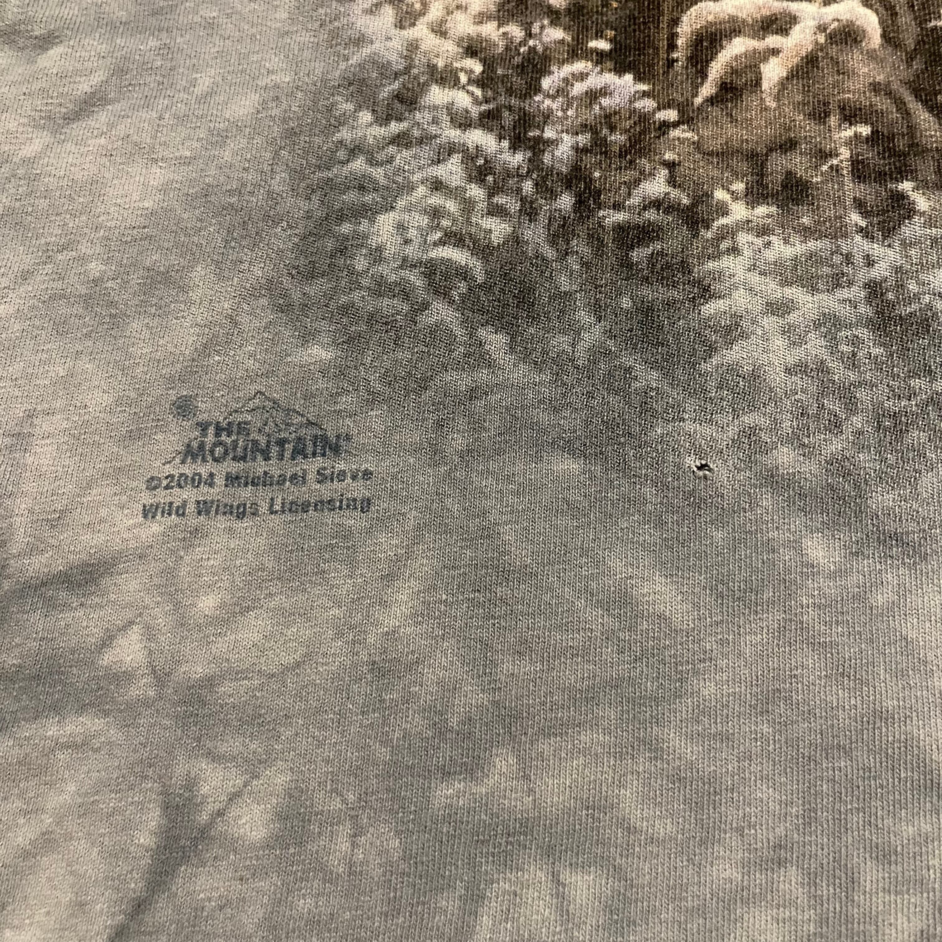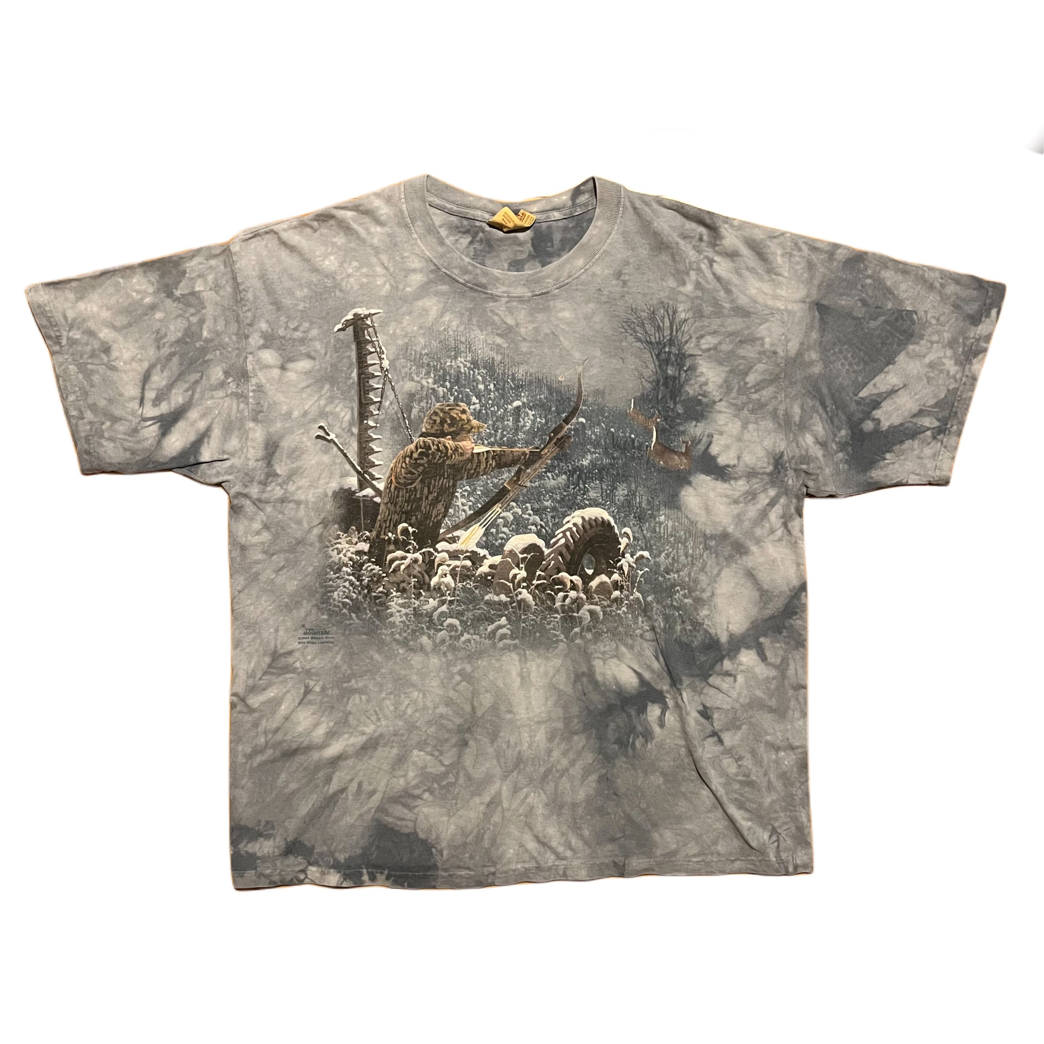 猟師が狩りをしているプリントに水色タイダイ、サイズ感も良い